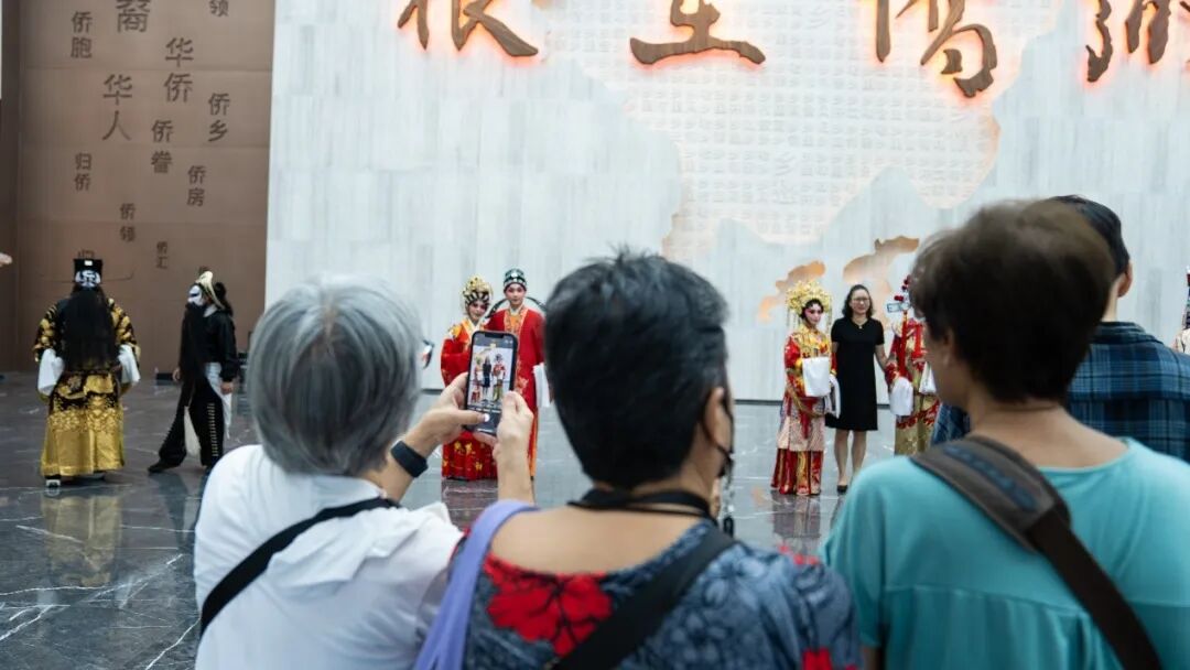 剧组奶奶们跟随讲解员进入展厅参观,她们穿过熙熙攘攘的人群,仔细观看展板,展板记载着华侨们背井离乡,漂洋过海的历史瞬间。奶奶们在心中默默感受着这份历史的厚重感,仿佛能够听到来自父辈的第一代移民的呼唤,感受到那些曾经的岁月。