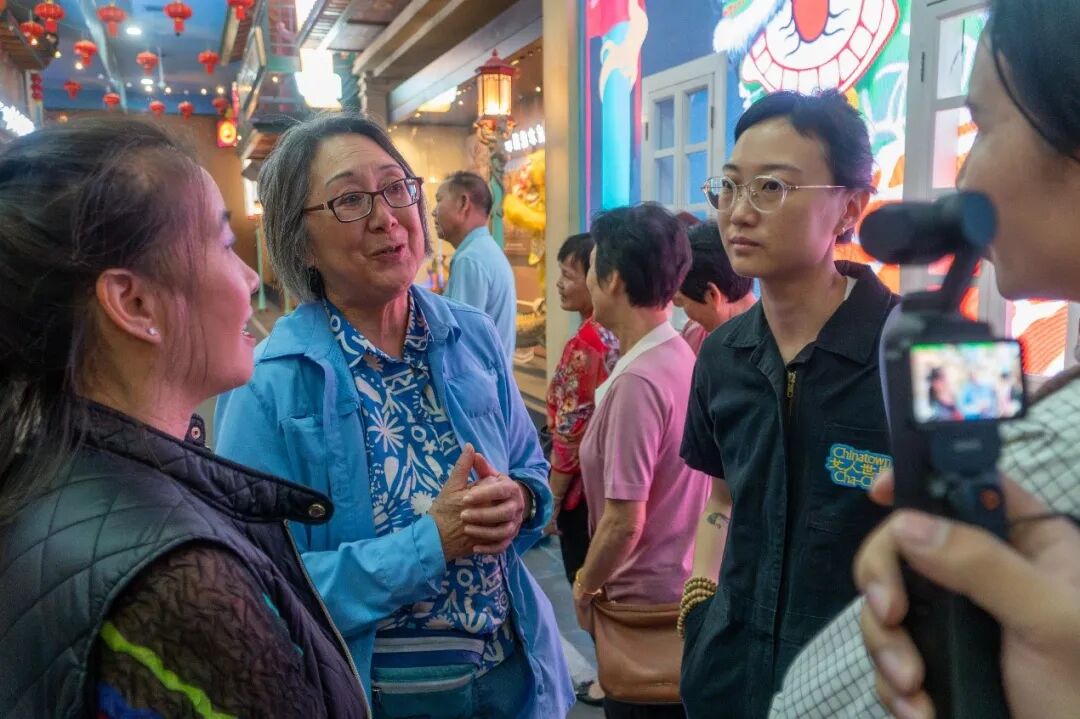奶奶们来到唐人街展区,映入眼帘的是熟悉又亲切的景象。洗衣店、中餐店、杂货铺、中药铺、醒狮壁画……这里仿佛时间停滞的古老街区,满载着她们的回忆与乡愁。
