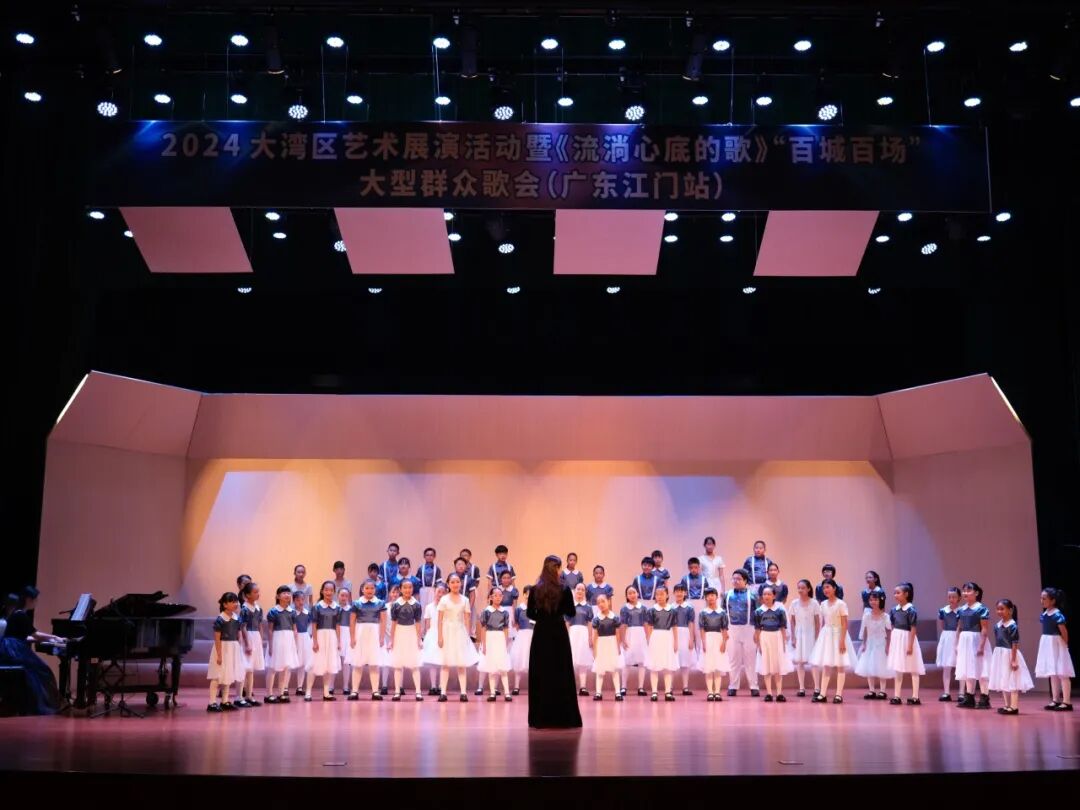 尤为值得一提的是,在本次江门站歌会中,由江门市文化馆选送的江门市蓬江区范罗冈小学(滨江校区)雅范之声合唱,凭借《飞向蓝天》和《崖上的波妞》两首曲目荣获儿童童声组金奖。小演员们饱满的精神状态、扎实的演唱功底以及精彩的舞台表现,赢得了评委和观众的一致好评,也为江门争得了宝贵的荣誉。