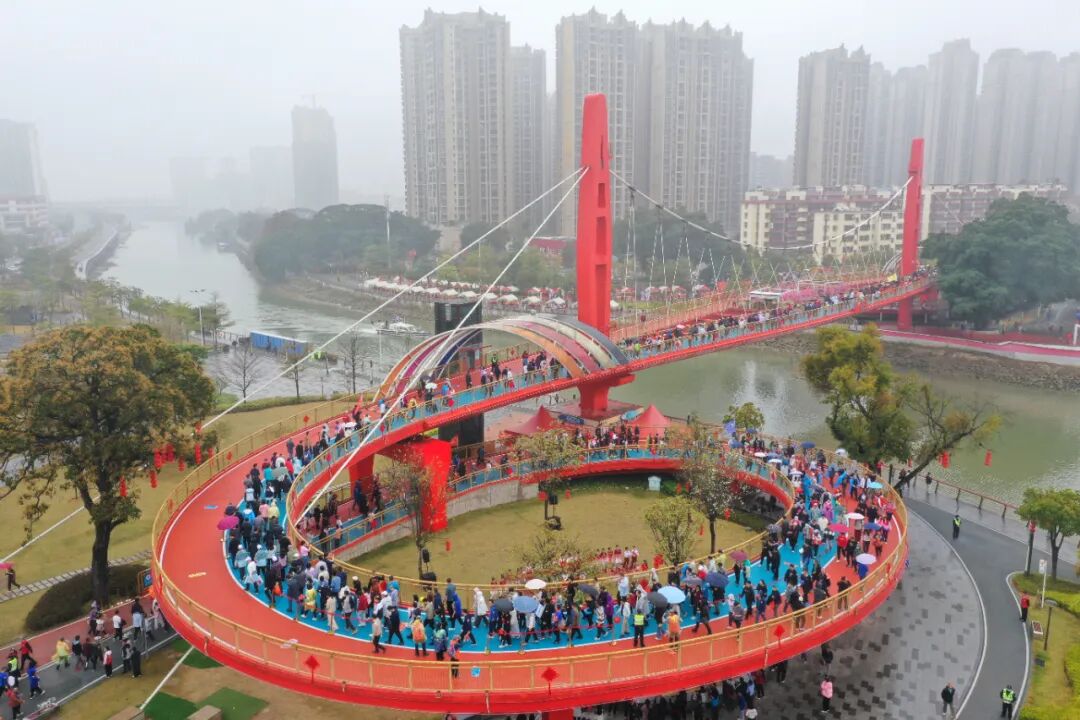 万名参与者从东湖广场出发,沿启明里、下沙公园等文化地标健步前行。在途经象征如意吉祥的胜利桥、如意桥时,不时有“跨过胜利 大吉大利”“走过如意 万事顺意”的喊声响起,以“登高跨越”之姿传递美好祈愿。沿途非遗展演、乐队驻唱、龙狮巡游、元宵灯谜等“文化加油站”亮点纷呈。终点以“公益嘉年华”形式组织爱心集市,非遗手作、健康义诊、特色美食义卖吸引大量市民踊跃参与。