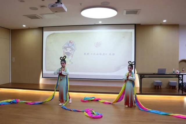令人期待的粤剧《天女散花》表演将活动推向了高潮。两位粤剧小演员身着美丽的戏服、挽着长长的水袖,以优美的身段和婉转的唱腔,展现了粤剧的独特魅力。孩子们被精彩的表演所吸引,不时发出惊叹声和掌声。