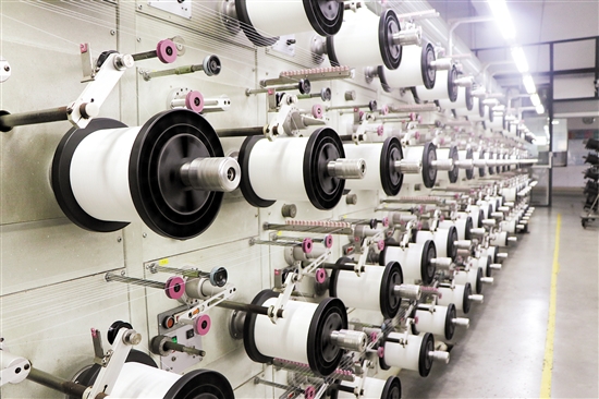 新华胶丝厂有限公司通过数字化转型让企业每年节省逾百万元成本。图为该公司自动化车间内,胶丝正以每分钟60—120米的速度上卷。