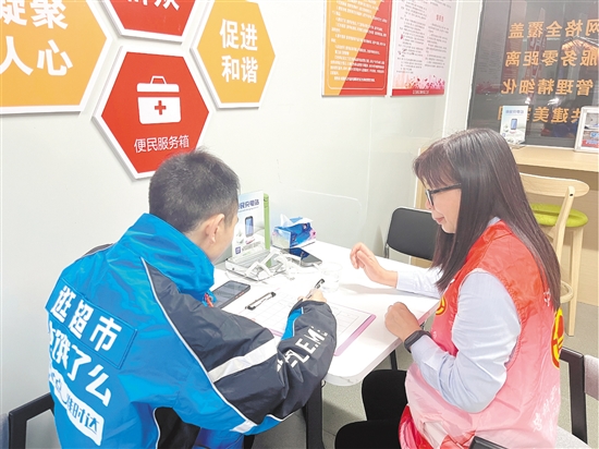 党员邓开结是红色驿站的志愿者之一,退休后积极参与社区志愿服务和基层治理工作。“我本来就住在这附近,在这里既能享受美丽的休憩环境,又能提供志愿服务,让更多户外劳动者体面劳动、舒心工作,何乐而不为。”目前,红色驿站还采用了党员先锋岗排班制,由党员志愿者自行认领时间参与服务。