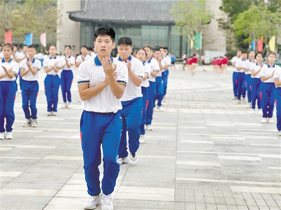 ▶鹤山推动咏春进校园,促进青少年修身立德。