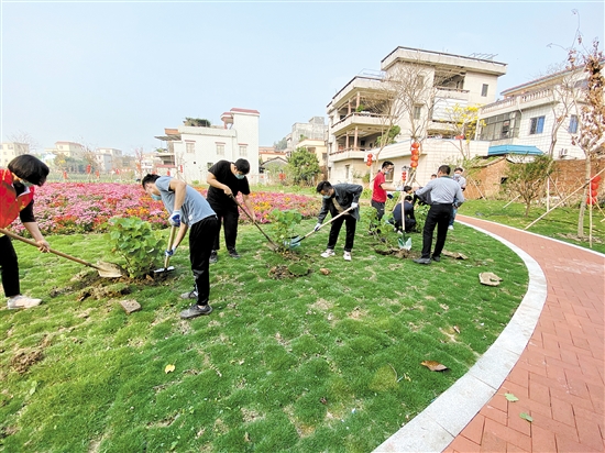 蓬江区荷塘镇南村村党总支联合育德幼儿园开展“植树养绿,扮靓美丽乡村”植树绿化活动。