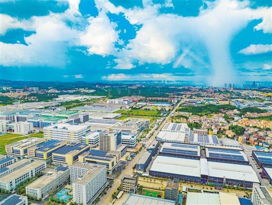 在蓬江(荷塘)万洋众创城,昔日低矮的红砖厂房已蜕变为现代化的工业园。罗霈 摄