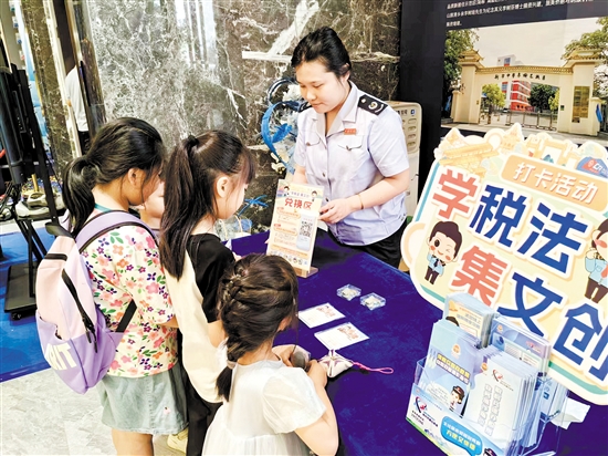 “活动好玩又新颖,通过扫码答题学税法就能获得文创礼品,既可以激发孩子学习税法的兴趣,又丰富了课外生活,很有意义。”在台山中心图书馆打卡点,带着孩子来阅读的王女士表示。活动现场,孩子们聚在一起,针对题目内容你一言我一语展开热烈讨论,家长们在一旁适时引导,税务工作人员则围绕打卡答题规则详细讲解税收知识。
