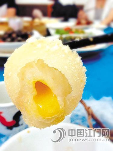 酥炸汤圆。这是我最钟爱的一款饭后甜点。酥香外脆的外皮,一口咬下,软绵的糯香袭击舌尖,这般“温柔香”让人无法抗拒,随之香滑清甜的蛋黄酱缓缓流出,整个口腔萦绕着蛋香、酥香和淡淡的花香。怪不得如此受欢迎!