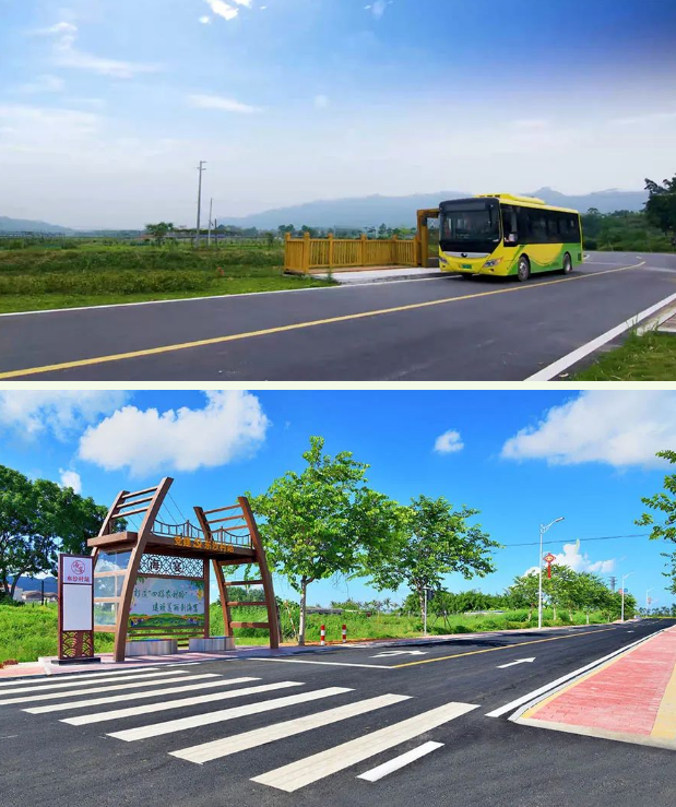 打造有文化的农村公路,才能够真正留住乡愁。全市各级交通运输部门坚持示范引领,结合当地特色资源,串联起鲜明的文化特色和人文符号,打造“一路一特色”精品农村公路,让“四好农村路”成为地方的靓丽名片。 开平“最美侨路”塘口示范路由赤马线、交四线、交锅线、强亚村道等路段构成,结合世遗廊道、碧道游线的建设,将沿线世遗点自力村碉楼群、立园、碉庄、红色教育基地谢创故居等最具价值的乡村、华侨文化、红色资源有机融合起来,配套建有六个结合碉楼元素的公路驿站,成为了具历史沉淀的文化游径,实现了交旅深度交融。 恩平县道X831线牛皮仔至良西那湾段以“农村公路+旅游+生态”绿色环保理念进行设计打造,沿线设置了特具风格的公交站亭和观景台,公路两旁选种了四季风景林,农耕文化涂鸦壁画随处可见,配套了3个集温泉旅游、土特产销售、充电桩等功能于一体的侨乡特色综合性驿站,设有2个“花林绿地”公园,并串联多个温泉和花海旅游景区,已成为众多游客前来打卡的“网红路”。